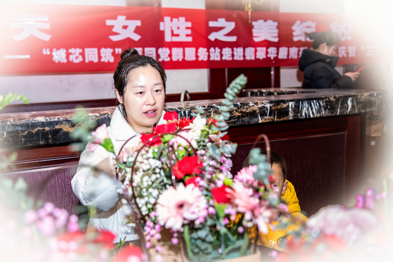 活動(dòng)現(xiàn)場(chǎng)氣氛熱烈而融洽,居民們邊向老師學(xué)習(xí)邊交流,互相分享自己的插花心得。一朵朵美麗的花朵在大家的手中綻放,仿佛也在訴說著女性的堅(jiān)韌與美麗。