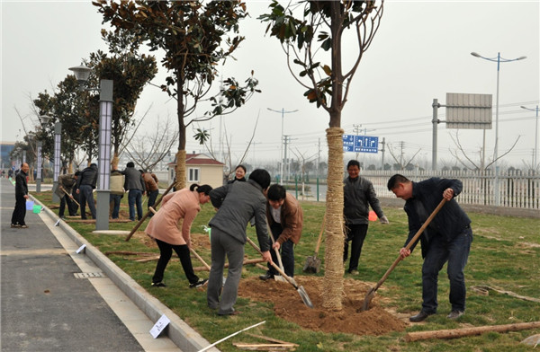 植樹現(xiàn)場(chǎng),一派熱火朝天的勞動(dòng)景象,大家熱情高漲、干勁十足,分工協(xié)作,默契配合,定行、鏟土、填坑、澆水,每道工序都進(jìn)行的十分細(xì)致、認(rèn)真。經(jīng)過一番辛勤勞動(dòng),共栽種廣玉蘭40余棵,一行行新栽下的玉蘭樹昂然挺立,在和煦的春風(fēng)中展現(xiàn)著蓬勃生機(jī)。