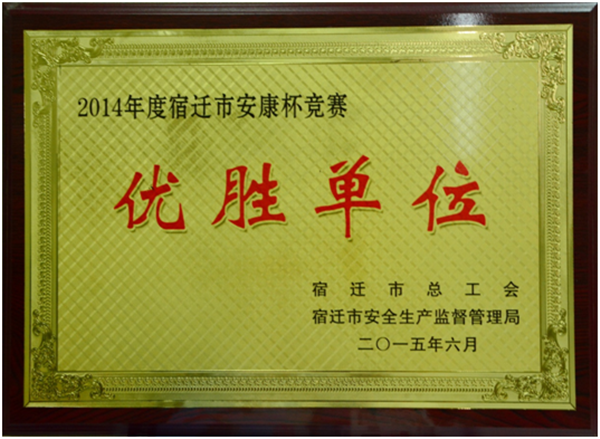 近日,公司獲評(píng)宿遷市總工會(huì)和宿遷市安全生產(chǎn)監(jiān)督管理局聯(lián)合頒發(fā)的2014年度宿遷市安康杯競(jìng)賽優(yōu)勝單位稱號(hào)。獲此殊榮的本次表彰全市共有18家單位,開(kāi)發(fā)公司也是園區(qū)唯一一家獲得優(yōu)勝單位稱號(hào)。