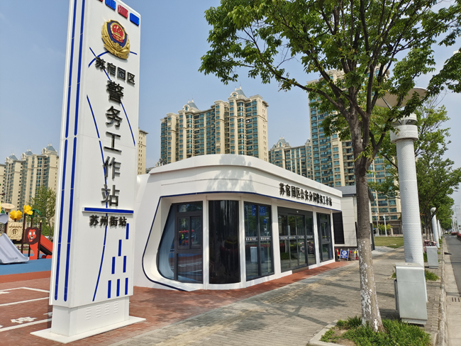 該警務工作站位于園區(qū)治安復雜部位、人車流密集區(qū)域的玄武湖路臨時健身公園東側(cè),建筑面積70多平方米。警務工作站外觀簡潔、標識明顯,內(nèi)部設置接處警區(qū)、調(diào)解中心、志愿者服務區(qū)和休息室。警務工作服務站啟用后,既是警方工作平臺,也是便民服務網(wǎng)點,將實現(xiàn)屯警街面、快速處警等一站式功能,著力筑牢社會治安打防管控第一道關口,為社會治安穩(wěn)定有序提供了堅實保障。