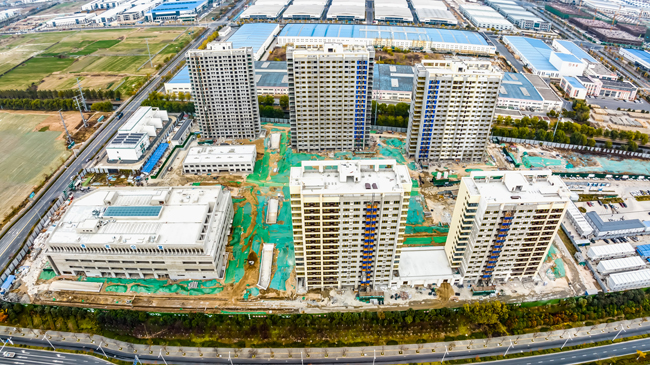 蘇宿工業(yè)園區(qū)為滿足入園企業(yè)集中住宿需求,讓企業(yè)擁有更多的精力專注于生產經營,建成第一集宿區(qū)-園區(qū)公舍,在建第二集宿區(qū)-青年公寓。青年公寓一期項目建筑面積約13.6萬平方米,含藍領公寓、白領公寓、商業(yè)樓,項目建成后可入住員工約8000人。